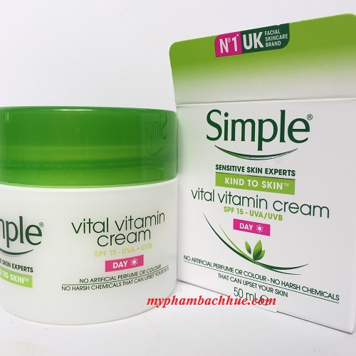 Nếu bạn đang tìm một dòng kem dưỡng da ban ngày. Giúp dưỡng ẩm, giảm tiết dầu, dưỡng da mềm mịn trắng sáng. VẬY THÌ NÓ ĐÂY => Kem Simple Ban Ngày Kind To Skin Vital Vitamin chuyên biệt đến từ Mỹ.